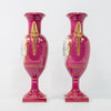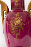 Gorgeous pair porcelain vasesburgundy red limoges porcelain with romantic victorian scenes and brass swan handlesvery nice set35.5 cm...