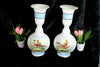 PAIR antique opaline glass vaseswith pheasant birds 1920svery nice set in good condition39 cm height
