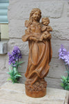 Vintage 1970s Wood carved madonna figurine with child31 cm height