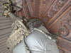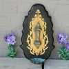 Rare French antique Holy water fonton a wood panel spelter sacred heart christ and brass decoration around him35...