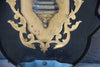 gorgeous french antique holy water fontwith a hand paint porcelain medaillon with madonnaon blue velvet 28.8 cm height...