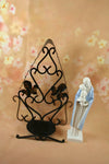 Flemish Porcelain Holy Mary / madonna placed on an Iron wall console Console total hight 40cmMAdonna 26 cm...