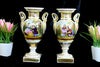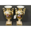 Antique pair vieux paris porcelain Vaseswith hand paint scenes , romantic couple on front side and landscape decor...