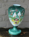 GORGEOUS antique french opaline glass vase with couple of birds 31 cm height 1950 good condition,small chip backside...