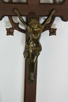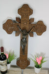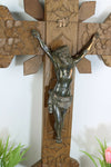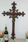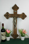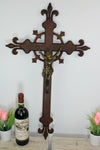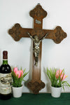 Antique top piece neo gothic wood carved crucifix with a bronze christ corpus 19th centuryvery detailed carving76  x...