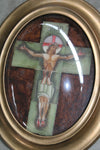 Antique French crucifix cross behind glass crucifix is made with ceramic tiles very nice wood gold gilt frame39...