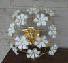 Vintage 70s Lampflush mount modelmetal gold gilt and murano white glass flowers50 cm diameter and 18 cm heightyou...
