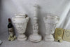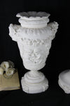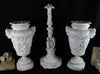 A huge Antique French chalkware setwhite painted Vaes with putti decor and devil heads on sides Centrally a...