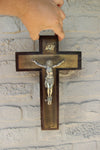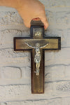 Antique french crucifixwood and metal christart deco period 30 x 20 cm