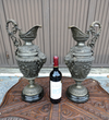 Antique pair French ewer pitchersspelter metal with bronze patina and marble bases50 cm height and 24 cm widevery...
