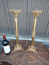 pair antique brass chuch candlesticksneo gothic design with angels at the basevery beautiful setbegin XXth centurysome wear finish...