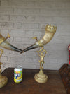 antique pair cornucopia horn statuesbronze base with putti cherub figurineson top of horn bird good condition with wear...