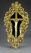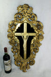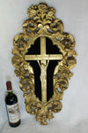 Antique French mid 1800s Crucifix JAnsenist Very detailed hand carved christ in a wood carved gold gilted frame...