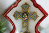 Gorgeous antique French holy water font crucifixfor wall hangingonyx marble on red velvet back plate 35.5 x 27...