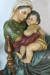 Antique chalkware statue group with mary and young jesus good condition with slight wear / retouches finish 28.5...