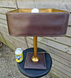 This very nice desk lamp is made of brown leather and brass. very elegant model lamp for your desk...