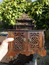 gorgeous vintage 1960s miniature wood cut cabinetwith doors with lion heads on very beautiful piece26 cm lenght and...