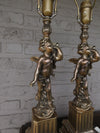pair vintage 60/70s Table lamps with cherub putti figurines and lion paws is for e27 bulb spelter metal...
