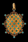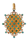 Very original 18k yellow gold (750 thousandths) photo holder pendant adorned with small turquoise and chrysoprase cabuchons between...