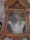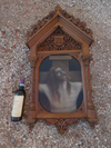 antique Church wall plaque wood carved neo gothic designwith in the middle oil on on board painting christ,...