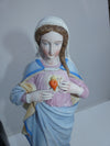 antique belgian 19thc vieux andenne bisque porcelain sacred heart jesus statue very beautiful colourschp finger/ base see pic 38...