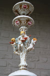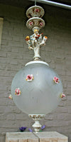 Gorgeous italian chandelier from 1970capodimonte musician figurines and faience roses on the glass globe 80 cm height and...