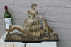 Gorgeous art deco 1930 chalkware statuelady with 2 borzoi dogsmarked with depose at back53 x 14 x37.5 cm...