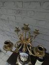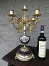 vintage Cobalt blue porcelain candelabrawith romantic decorsatyr heads in base48 x24 cm 1970sgood condiition,slight wear gold finish but...