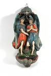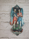 Antique rare french holy water font Chalk hand paint with angel figurinesdated 1887 unique piece that came from...