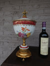 vintage 70s porcelain& brass large bowl Vaseliddedfloral decordolphin pawsvery beautiful 40,5 cm heighht and 18,5 cm diameter
