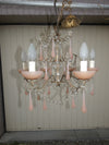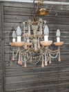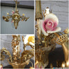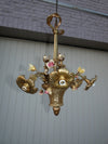 vintage bronze chandelierwith porcelain flowersputti cherub figurineswas assembled for a parisian family but never used it needs wiring...