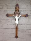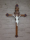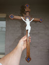 vintage wood carved cross With bisque porcelain christ corpus very beautiful 1960s 59 x 36 cm WORLDWIDE...