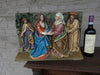 antique religious top piece Wood carved in relief can stand on its own and also a hook to...