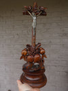 antique rare to to find wood carved cross crucifixwith metal christ corpusdecorated with fruits / snake 54 x...