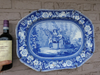 antique early 19thc hop pickers blue white pottery wall plaquedepicting three women and a boy putting hops into...