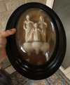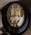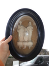 antique 19thc Meerschaum /wood Wall plaquewith holy familybehind convex glass36 x 27 cm