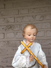 antique french chalk statue of saint Drogo50 cm heightgood condition1950s