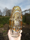 vintage 1960 Bohemian crystal glass vasewith fleur de lys symbol26 cm heightgood condition with minimal wear