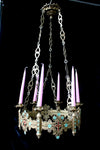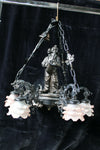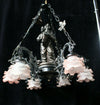 Vintage 1970 French cast resin chandelierwith a clown figurine in the middleand 6 glass paste soft pink coloured...
