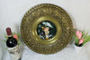 Antique french metal round wall plaque with relief decorations in the metalinside a porcelain plate with a hand...