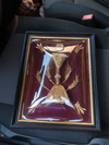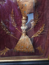 antique 19thc wood carved frame with religious handmade religious decoration insidework of nuns convex glass 39 x 29...