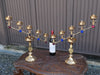 antique gorgeous religious set of candelabrasbrass metal with coloured stones48,5 cm height and 47 cm wide eachmatching setsome...