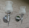 pair 1970 metal chrome wall lights sconceshand formopaline glass shades on top design attr to maison jansengood condition...