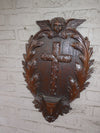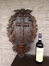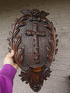 Gorgeous antique french wood carved holy water font with plaquewith angel on top 58,5 x 39 cm so...