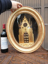 antique reliquary frame with 9 relics and a chapel / cathedral in in nego Gothic Revival styleRelics for:...