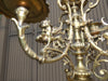 Antique boch blue white delft decor pottery candelabraswith brass angel figurines at the side handles and dragons in...