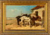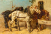 Antique Belgian oil on canvas paintinghorses eating trough typical animal scene from schouten from top listed artist Henry...