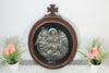 Rare Antique French holy water font in a wood carved framemetal silver plated ( found no stamps on...