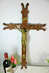 Antique large french wood carved crucifixwith metal gold gild christ 71 x 43.5 cm 1920soverall good condition ,...