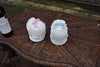 Beautiful old porcelain boxes representing babies' heads, a girl and a boy.Very beautiful german tobacco jars with lidsearly...